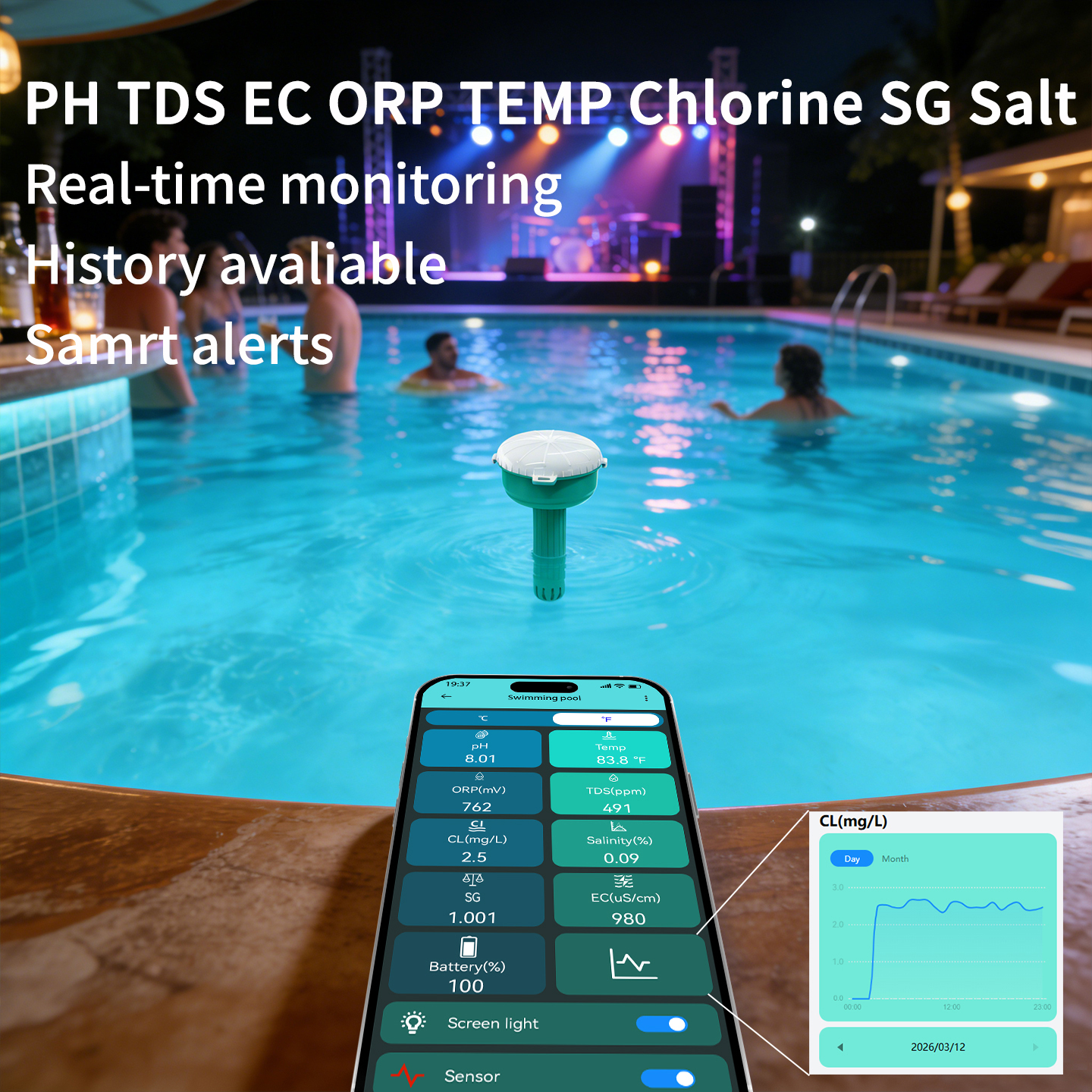 PH TDS EC OPR SALT SG TEMP Chlorine